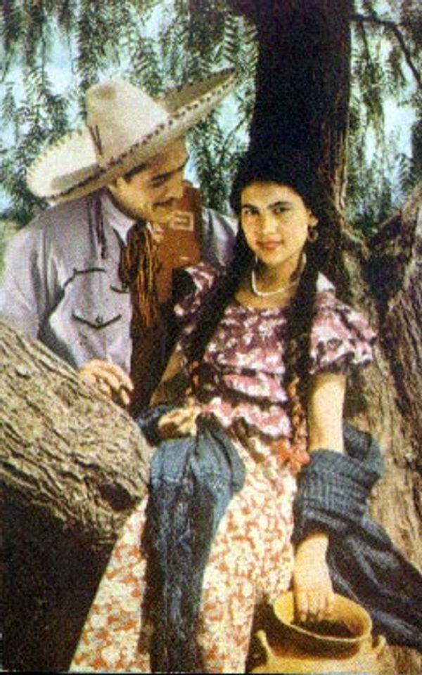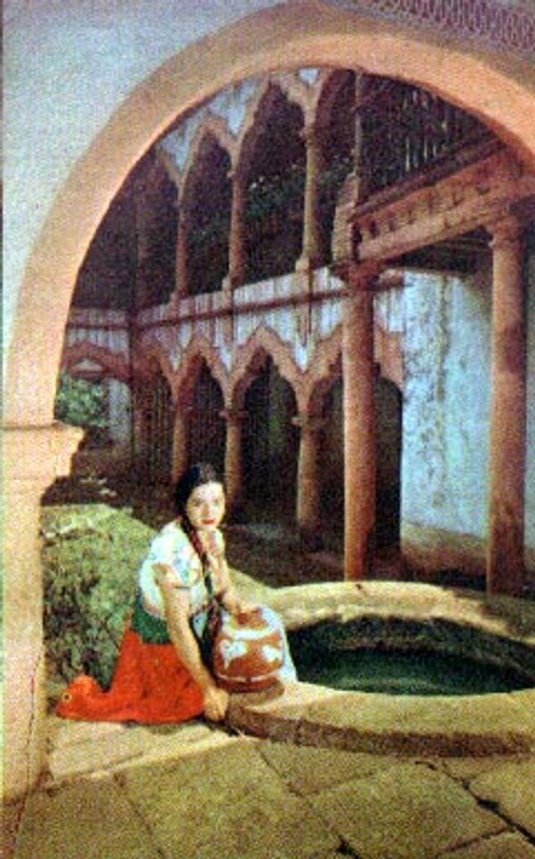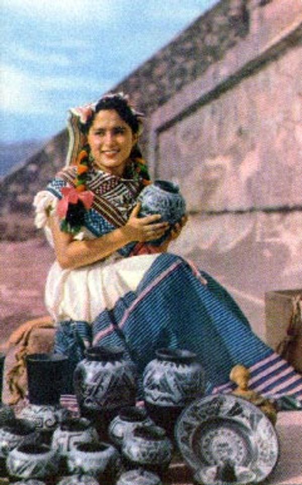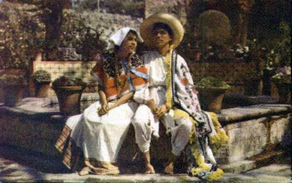 Fourteen of Márquez' images of dances and popular arts make up a booklet entitled "Folklore Mexicano", which contains both color and black and white views. Another folder entitled "Beautiful National Types of Mexico" contains 20 of Márquez' tinted photographs from the large series of 96 displayed in two earlier pages of this web site. The folder includes numbers 1, 4, 5, 6, 7, 8, 14, 15, 16, 30, 35, 36, 39, 40, 47, 53, 56, 66, 78 and 79. Several other folders include work by Marquez and/or other Fischgrund photographers: "Acapulco", "Cuernavaca / Taxco / Acapulco", "Mexico", "Mexico - Ciudad de los Palacios" and "Souvenir of Mexico".