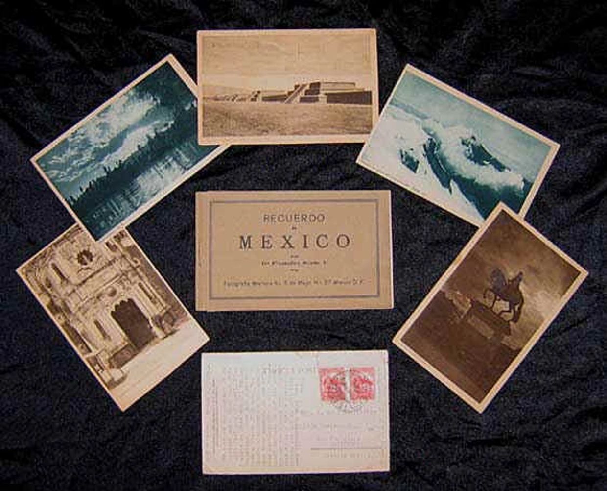 Brehme published at least 12 booklets containing postcards with perforations on one side. Tourists tore out the postcards and sent messages with postmarks dating from 1919 to 1929. The dozen booklets all bear the Brehme studio address on Avenida Cinco de Mayo. Each booklet contained either 10 or 12 views printed on sturdy paper in either brown or blue ink, with titles in either block or cursive typeface. Few intact booklets, complete with their identifying covers, have survived.