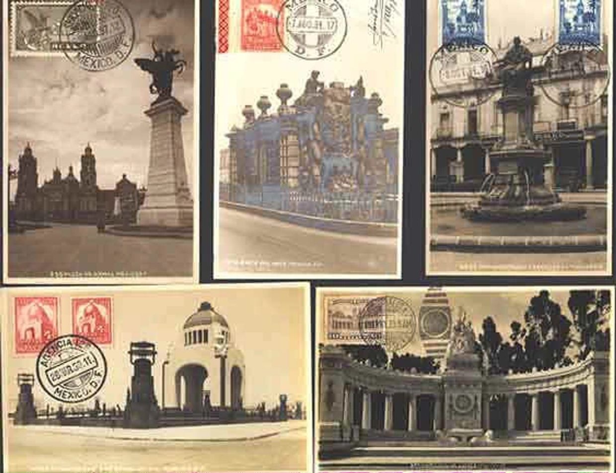 These unusual images of monuments in Mexico City are Brehme real photo postcards that have been maximized. Considered as novelties or specialties, maximum cards have been a pursuit of stamp collectors since at least the 1920s. Such cards are fascinating because they bridge stamp and postcard collecting, the two most popular hobbies of their day. The creative collector tried to find a postcard that matched the image on a stamp as closely as possible and then placed the stamp on the face of the card. The collector further enhanced the card by postmarking it in the very town where the photographer took the picture. Collectors around the world still exchange maxicards.